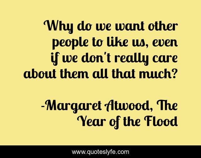 This page presents the quote "Why do we want other people to like us, even if we don't really care about them all that much?". Author of this quote is Margaret Atwood, The Year of the Flood. This quote is about self-awareness, self-worth,.