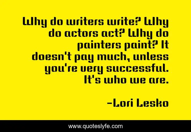 This page presents the quote "Why do writers write? Why do actors act? Why do painters paint? It doesn't pay much, unless you're very successful. It's who we are.". Author of this quote is Lori Lesko. .