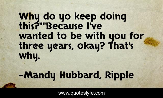 This page presents the quote "Why do yo keep doing this?""Because I've wanted to be with you for three years, okay? That's why.". Author of this quote is Mandy Hubbard, Ripple. This quote is about declarations-of-love, romantic,.