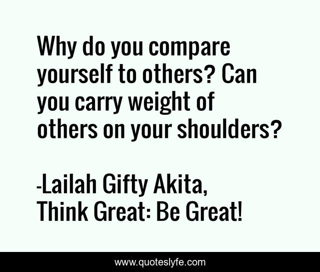 "Lailah Gifty Akita, Think Great: Be Great! Quotes." Quoteslyfe.com, 2025. Fri. 05 Dec. 2025. <https://www.quoteslyfe.com/quote/Why-do-you-compare-yourself-to-others-140353>.