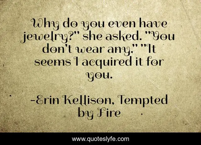 "Erin Kellison, Tempted by Fire Quotes." Quoteslyfe.com, 2025. Sat. 06 Dec. 2025. <https://www.quoteslyfe.com/quote/Why-do-you-even-have-jewelry-she-131643>.