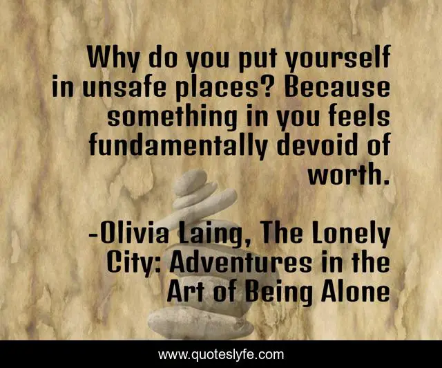 This page presents the quote "Why do you put yourself in unsafe places? Because something in you feels fundamentally devoid of worth.". Author of this quote is Olivia Laing, The Lonely City: Adventures in the Art of Being Alone. .