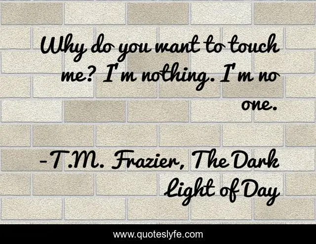 This page presents the quote "Why do you want to touch me? I'm nothing. I'm no one.". Author of this quote is T.M. Frazier, The Dark Light of Day. This quote is about new-adult, dark-fiction,.