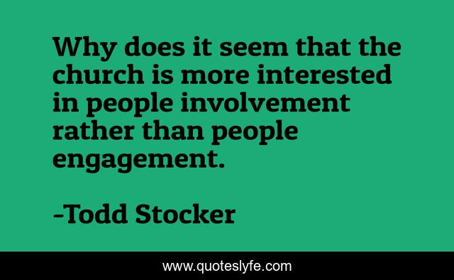 This page presents the quote "Why does it seem that the church is more interested in people involvement rather than people engagement.". Author of this quote is Todd Stocker. This quote is about confidence, engagement, positive, motivational, involvement, optimistic, inspirational, church, enthusiasm,.