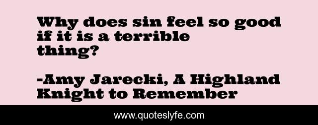 This page presents the quote "Why does sin feel so good if it is a terrible thing?". Author of this quote is Amy Jarecki, A Highland Knight to Remember. This quote is about historical-romance, scottish-romance,.