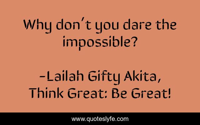 "Lailah Gifty Akita, Think Great: Be Great! Quotes." Quoteslyfe.com, 2025. Sat. 06 Dec. 2025. <https://www.quoteslyfe.com/quote/Why-don-t-you-dare-the-impossible-78485>.