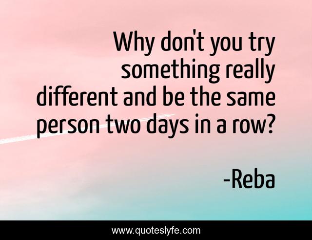 This page presents the quote "Why don't you try something really different and be the same person two days in a row?". Author of this quote is Reba. This quote is about continuity, character, consistency,.