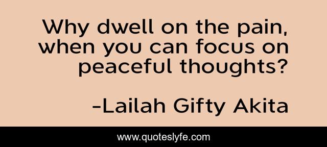 This page presents the quote "Why dwell on the pain, when you can focus on peaceful thoughts?". Author of this quote is Lailah Gifty Akita. This quote is about forgiveness, pain, positive-thinking,.