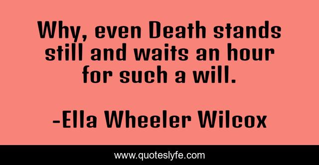 This page presents the quote "Why, even Death stands still and waits an hour for such a will.". Author of this quote is Ella Wheeler Wilcox. .