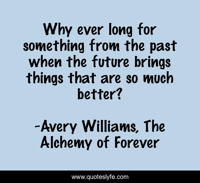 This page presents the quote "Why ever long for something from the past when the future brings things that are so much better?". Author of this quote is Avery Williams, The Alchemy of Forever. This quote is about past, quotes-to-live-by, future,.