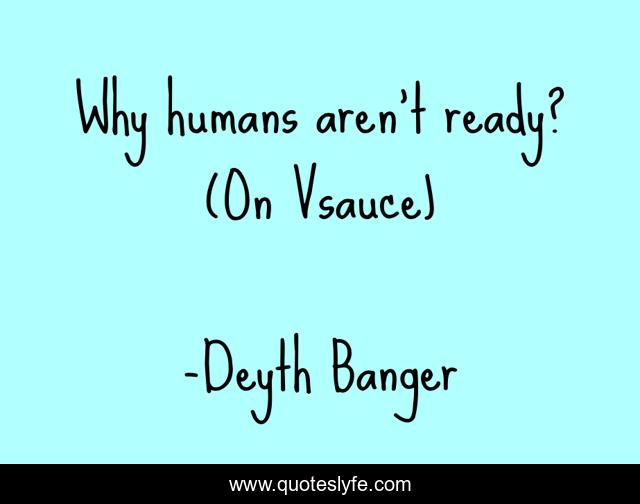 This page presents the quote "Why humans aren't ready? (On Vsauce)". Author of this quote is Deyth Banger. This quote is about ready, aren-t, humans,.