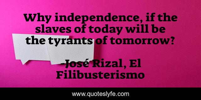 "José Rizal, El Filibusterismo Quotes." Quoteslyfe.com, 2025. Fri. 05 Dec. 2025. <https://www.quoteslyfe.com/quote/Why-independence-if-the-slaves-of-today-237409>.