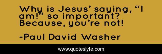 This page presents the quote "Why is Jesus’ saying, “I am!” so important? Because, you’re not!". Author of this quote is Paul David Washer. .