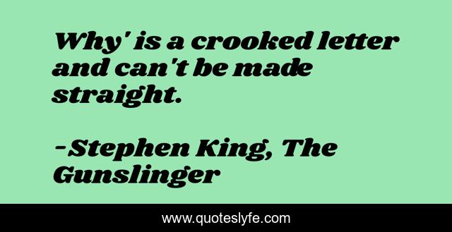 "Stephen King, The Gunslinger Quotes." Quoteslyfe.com, 2025. Fri. 05 Dec. 2025. <https://www.quoteslyfe.com/quote/Why-is-a-crooked-letter-and-can-7619>.