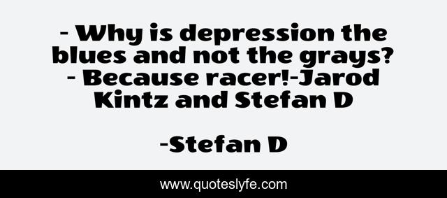 - Why is depression the blues and not the grays? - Because racer!-Jarod Kintz and Stefan D