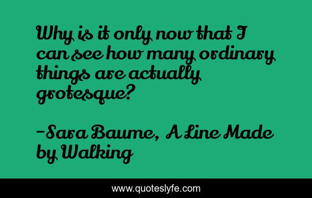 This page presents the quote "Why is it only now that I can see how many ordinary things are actually grotesque?". Author of this quote is Sara Baume, A Line Made by Walking. This quote is about a-line-made-by-walking, sara-baume, ordinary, grotesque, perspective,.