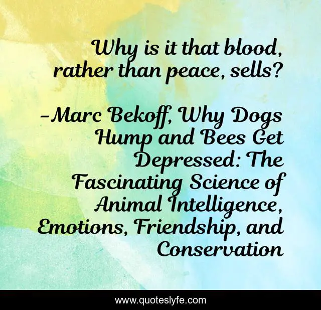 This page presents the quote "Why is it that blood, rather than peace, sells?". Author of this quote is Marc Bekoff, Why Dogs Hump and Bees Get Depressed: The Fascinating Science of Animal Intelligence, Emotions, Friendship, and Conservation. This quote is about peace, blood, violence,.