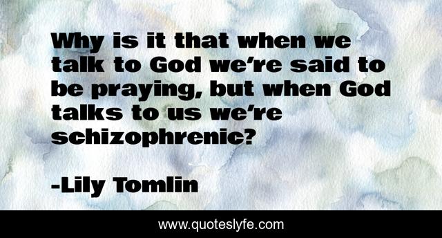 This page presents the quote "Why is it that when we talk to God we’re said to be praying, but when God talks to us we’re schizophrenic?". Author of this quote is Lily Tomlin. This quote is about devotion, prayer,.