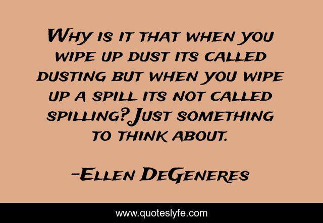 This page presents the quote "Why is it that when you wipe up dust its called dusting but when you wipe up a spill its not called spilling? Just something to think about.". Author of this quote is Ellen DeGeneres. This quote is about funny, worth-reading, random, comedy, seriously-i-m-kidding,.