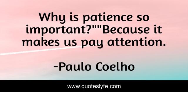 This page presents the quote "Why is patience so important?""Because it makes us pay attention.". Author of this quote is Paulo Coelho. .