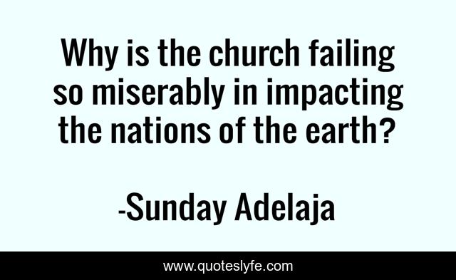 This page presents the quote "Why is the church failing so miserably in impacting the nations of the earth?". Author of this quote is Sunday Adelaja. This quote is about failing, miserably, church,.