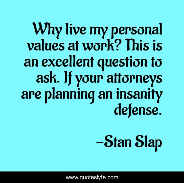 "Stan Slap Quotes." Quoteslyfe.com, 2026. Thu. 19 Mar. 2026. <https://www.quoteslyfe.com/quote/Why-live-my-personal-values-at-work-253504>.