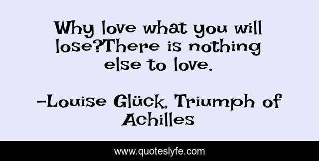 "Louise Glück, Triumph of Achilles Quotes." Quoteslyfe.com, 2025. Sat. 06 Dec. 2025. <https://www.quoteslyfe.com/quote/Why-love-what-you-will-lose-There-24721>.