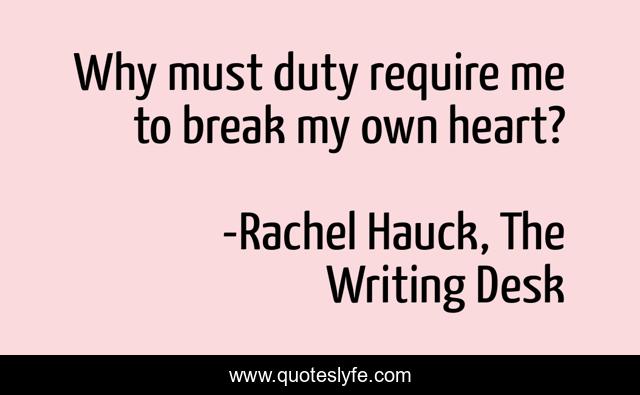 "Rachel Hauck, The Writing Desk Quotes." Quoteslyfe.com, 2025. Fri. 05 Dec. 2025. <https://www.quoteslyfe.com/quote/Why-must-duty-require-me-to-break-173053>.