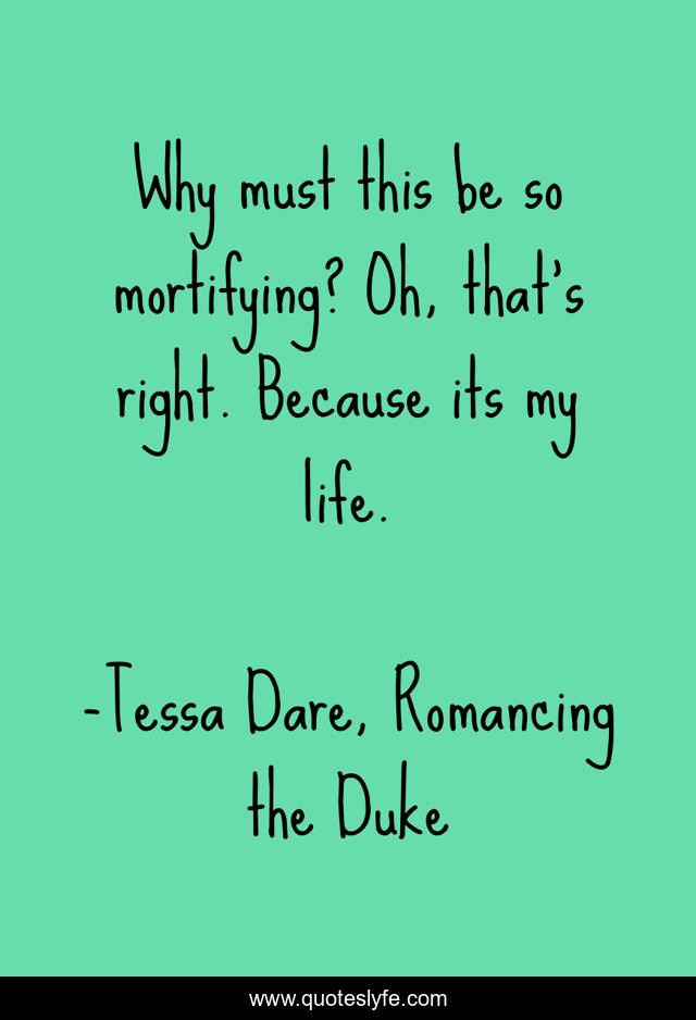This page presents the quote "Why must this be so mortifying? Oh, that's right. Because its my life.". Author of this quote is Tessa Dare, Romancing the Duke. This quote is about embarrassment, comedy, funny,.