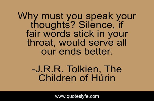"J.R.R. Tolkien, The Children of Húrin Quotes." Quoteslyfe.com, 2025. Fri. 05 Dec. 2025. <https://www.quoteslyfe.com/quote/Why-must-you-speak-your-thoughts-Silence-138252>.
