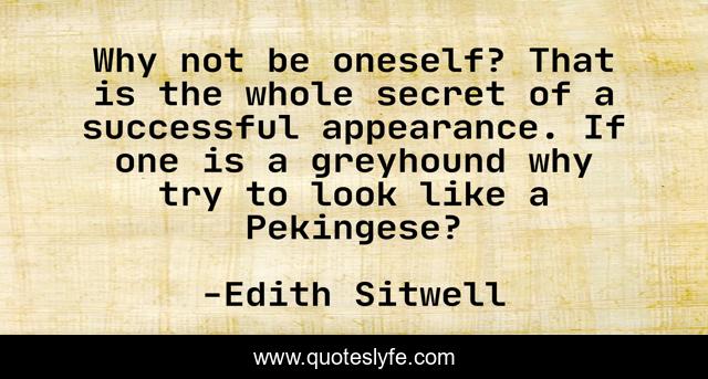 This page presents the quote "Why not be oneself? That is the whole secret of a successful appearance. If one is a greyhound why try to look like a Pekingese?". Author of this quote is Edith Sitwell. .