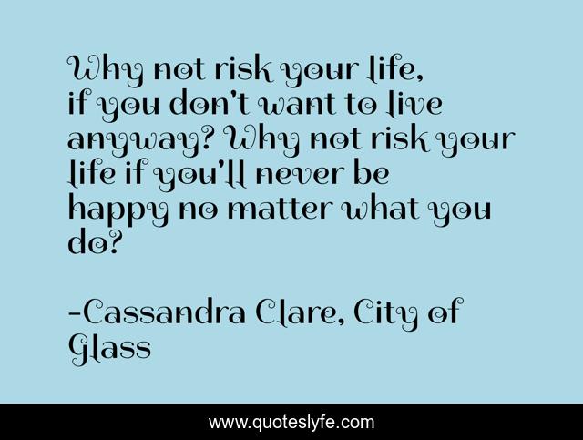 This page presents the quote "Why not risk your life, if you don't want to live anyway? Why not risk your life if you'll never be happy no matter what you do?". Author of this quote is Cassandra Clare, City of Glass. This quote is about depression, suicidal, reckless, tmi-series, sad,.