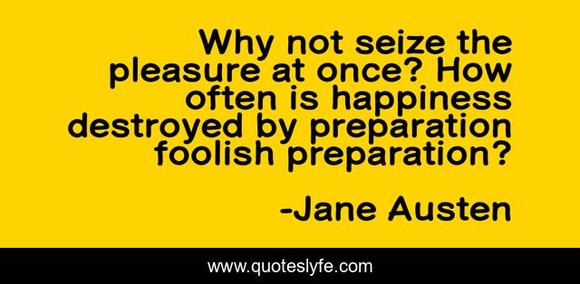 This page presents the quote "Why not seize the pleasure at once? How often is happiness destroyed by preparation foolish preparation?". Author of this quote is Jane Austen. .