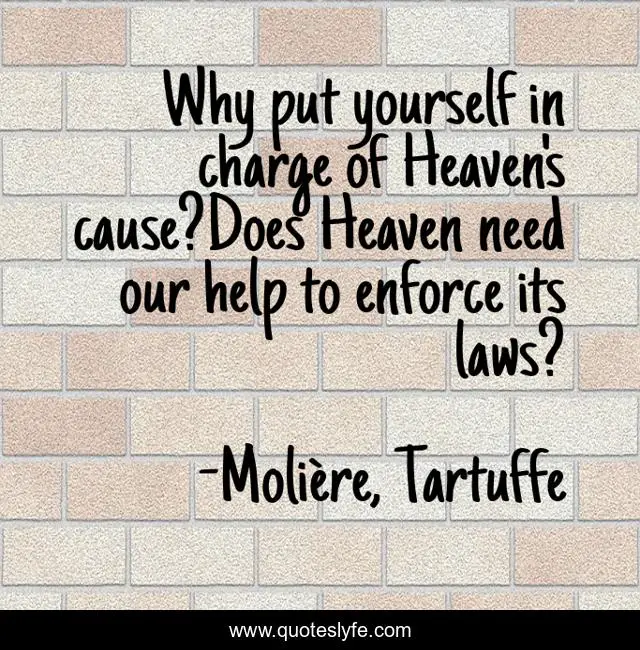 "Molière, Tartuffe Quotes." Quoteslyfe.com, 2025. Sat. 06 Dec. 2025. <https://www.quoteslyfe.com/quote/Why-put-yourself-in-charge-of-Heaven-183498>.