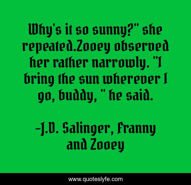 "J.D. Salinger, Franny and Zooey Quotes." Quoteslyfe.com, 2025. Fri. 05 Dec. 2025. <https://www.quoteslyfe.com/quote/Why-s-it-so-sunny-she-repeated-235861>.