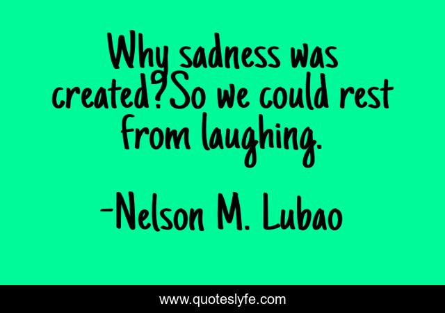 This page presents the quote "Why sadness was created?So we could rest from laughing.". Author of this quote is Nelson M. Lubao. This quote is about humor-inspirational, life, happiness, inspiration,.
