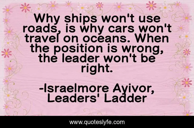 "Israelmore Ayivor, Leaders' Ladder Quotes." Quoteslyfe.com, 2025. Sat. 06 Dec. 2025. <https://www.quoteslyfe.com/quote/Why-ships-won-t-use-roads-is-65076>.