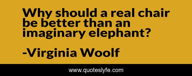 This page presents the quote "Why should a real chair be better than an imaginary elephant?". Author of this quote is Virginia Woolf. This quote is about art, fiction,.