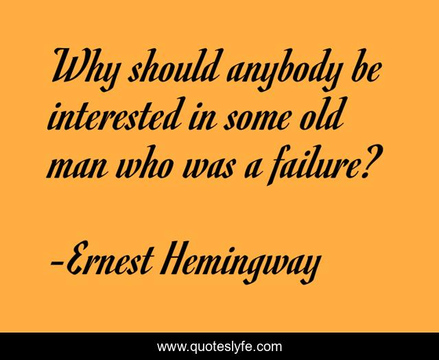 This page presents the quote "Why should anybody be interested in some old man who was a failure?". Author of this quote is Ernest Hemingway. This quote is about old man, why, man,.