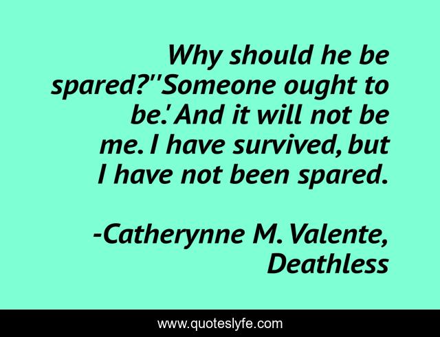"Catherynne M. Valente, Deathless Quotes." Quoteslyfe.com, 2025. Fri. 05 Dec. 2025. <https://www.quoteslyfe.com/quote/Why-should-he-be-spared-Someone-ought-196215>.