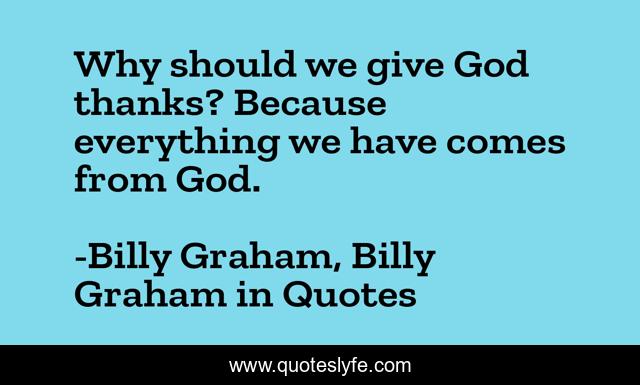 "Billy Graham, Billy Graham in Quotes Quotes." Quoteslyfe.com, 2025. Sun. 07 Dec. 2025. <https://www.quoteslyfe.com/quote/Why-should-we-give-God-thanks-Because-152284>.