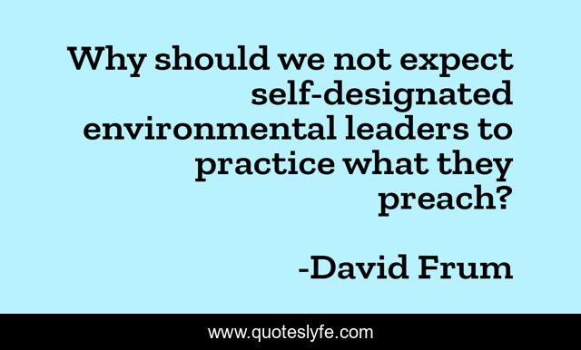 This page presents the quote "Why should we not expect self-designated environmental leaders to practice what they preach?". Author of this quote is David Frum. This quote is about practice, why, leaders,.