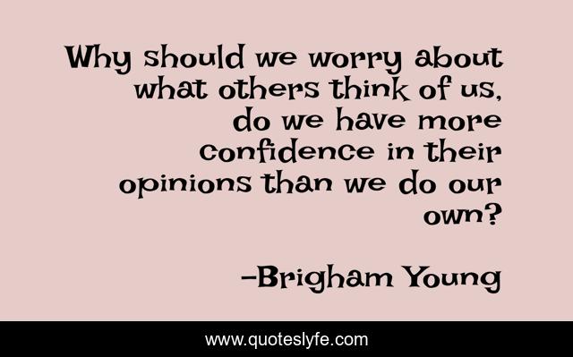 This page presents the quote "Why should we worry about what others think of us, do we have more confidence in their opinions than we do our own?". Author of this quote is Brigham Young. This quote is about ataraxy, self-esteem,.