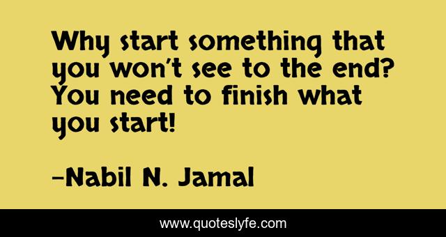This page presents the quote "Why start something that you won’t see to the end? You need to finish what you start!". Author of this quote is Nabil N. Jamal. This quote is about motivation, finish, end, complete, success, nabil, start, something, won-t,.