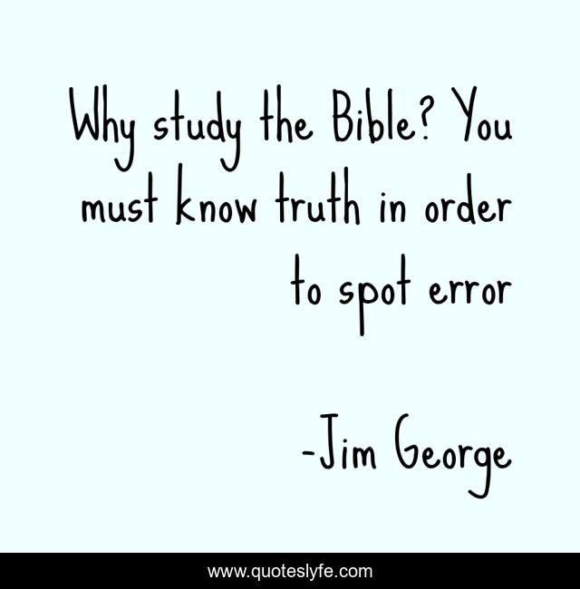 This page presents the quote "Why study the Bible? You must know truth in order to spot error". Author of this quote is Jim George. This quote is about christianity, bible, jim-george, truth, error,.