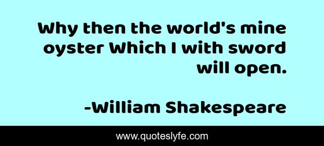 This page presents the quote "Why then the world's mine oyster Which I with sword will open.". Author of this quote is William Shakespeare. .