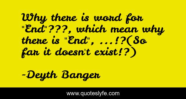 This page presents the quote "Why there is word for "End"???, which mean why there is "End", ...!?(So far it doesn't exist!?)". Author of this quote is Deyth Banger. This quote is about end, exist, doesn-t,.