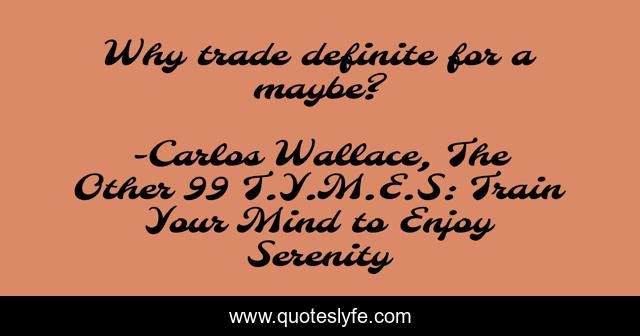"Carlos Wallace, The Other 99 T.Y.M.E.S: Train Your Mind to Enjoy Serenity Quotes." Quoteslyfe.com, 2025. Fri. 05 Dec. 2025. <https://www.quoteslyfe.com/quote/Why-trade-definite-for-a-maybe-26531>.