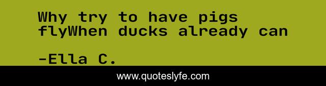 "Ella C. Quotes." Quoteslyfe.com, 2025. Fri. 05 Dec. 2025. <https://www.quoteslyfe.com/quote/Why-try-to-have-pigs-flyWhen-ducks-163084>.