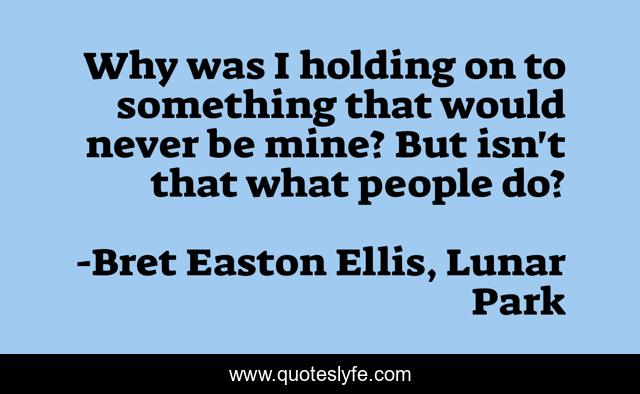 This page presents the quote "Why was I holding on to something that would never be mine? But isn't that what people do?". Author of this quote is Bret Easton Ellis, Lunar Park. This quote is about human-nature, holding-on, attachment,.